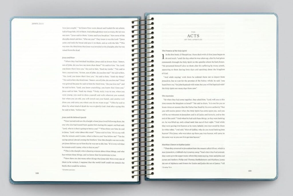 An inviting, easy-to-read layout with 9.5-point type and generous space for notes. The spiral-bound format lies flat for comfortable reading and writing. Designed to encourage deeper interaction with Scripture, this journaling edition is ideal for recording prayers and reflections.